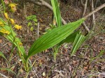 Terrestrial herb, 1-2 m tall. Leaves erect, lanceolate, up to 1.2 m long, plicate with a long petiole. Inflorescence densely many-flowered. Sepals greenish-yellow; petals tinged reddish-brown to red-purple; lip 3-lobed in the apical half, reddish-brown to purple, with whitish papillae on the 5 central veins of the mid-lobe; base of the lip saccate, greenish.