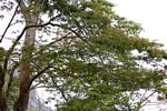 Very large tree. Bark greyish-brown, fairly smooth; large trees often buttressed at the base Leaves with 12-23 pairs of pinnae; leaflets in 38-67 pairs per pinna, linear-oblong, very small, less than 1 cm long; rhachis with a stalked gland between each pair of pinnae. Flowers in axillary spikes up to 19 cm long, white to yellow. Pods slender, up to 32 cm long, flat, splitting on one side and opening out flat. Seeds up to 7.5 cm surrounded by a reddish papery wing. |